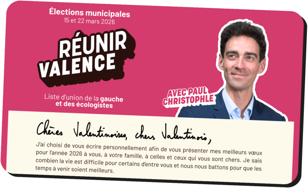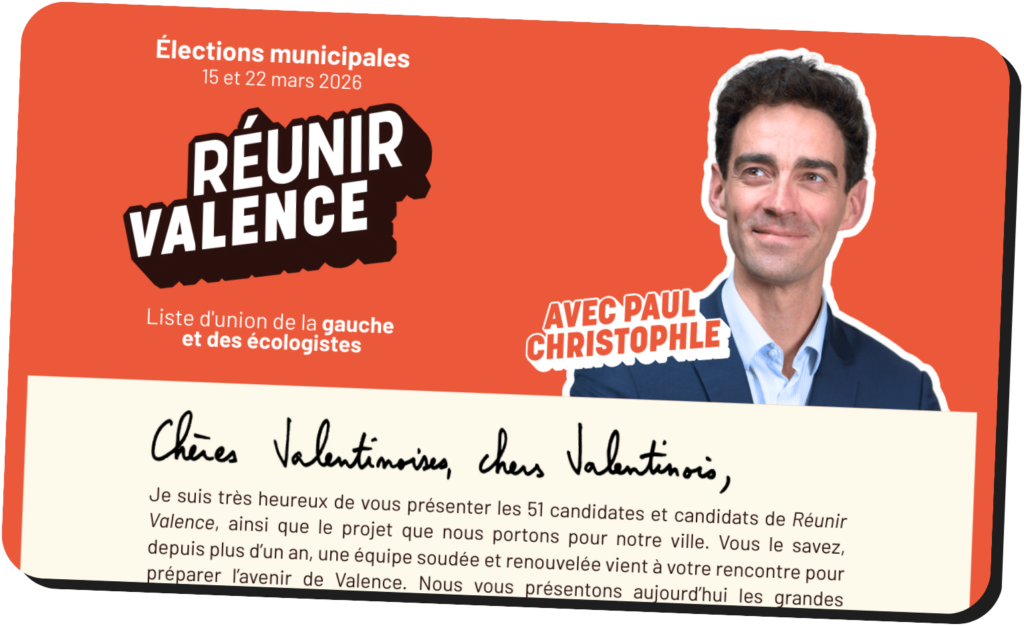 Avec toutes celles et ceux qui font vivre notre ville, nous voulons transformer ce rêve commun en réalité. Réunir Valence, c’est avancer ensemble.